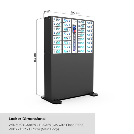 GIA 32 Bay Touchscreen Cell Phone Charging Locker with Full Base Floor Stand