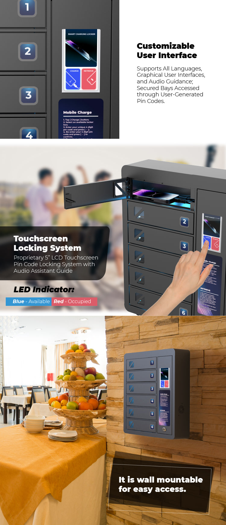 JUN 6 Bay Touchscreen Mobile Charging Locker