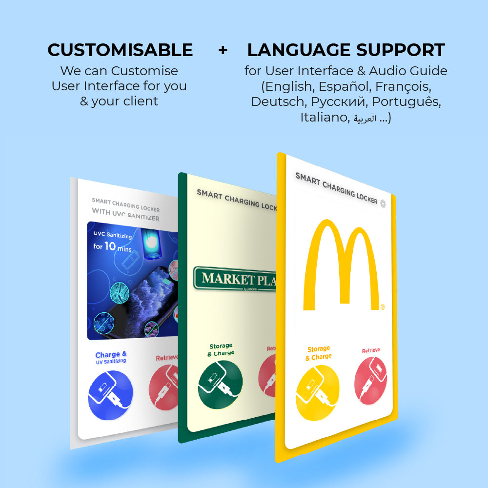 TheMAX 16 Bay Mobile Charging Lockerfor safely storing all valuables including wallets, keys, and cameras. This locker features an all-new, modern design and internals. A voice assistant guides users through the storing and retrieving process while the touchscreen code keypad eliminates lost keys for guests.
